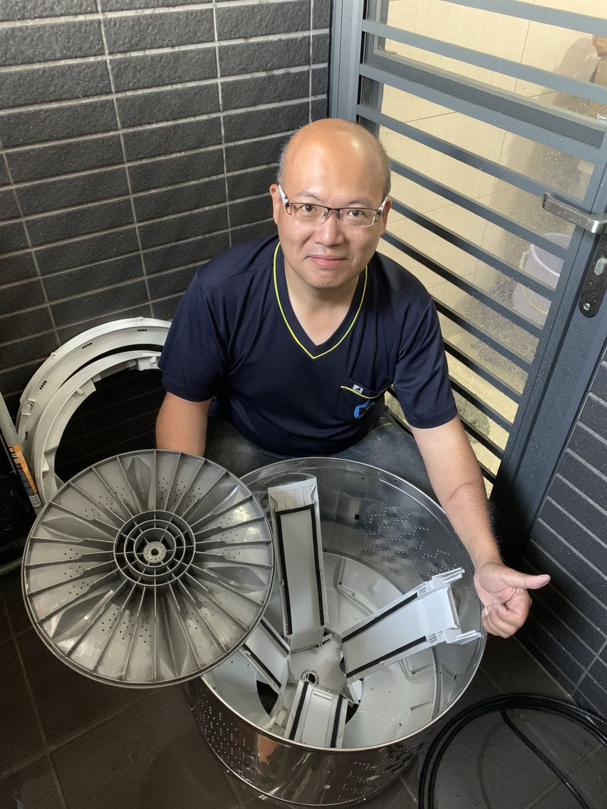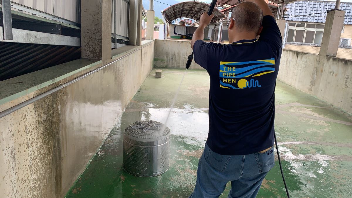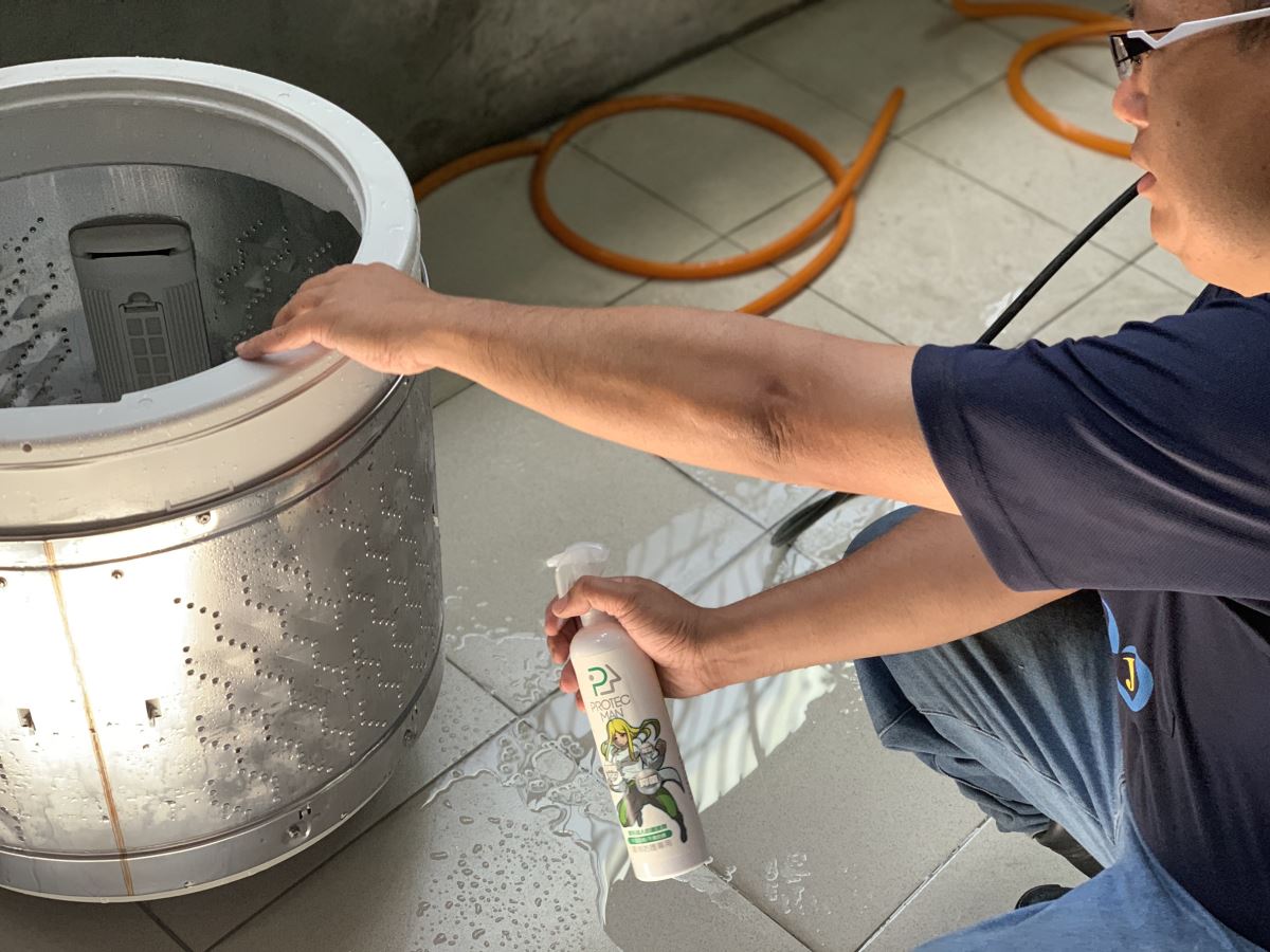 我們會將內外桶拆開,並利用高壓水槍沖洗內外桶、波浪盤、側板、濾網汙垢