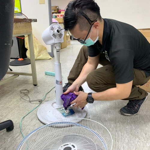 試想「電風扇使用一段時間後在葉片上也一定都會留下髒髒的灰塵」